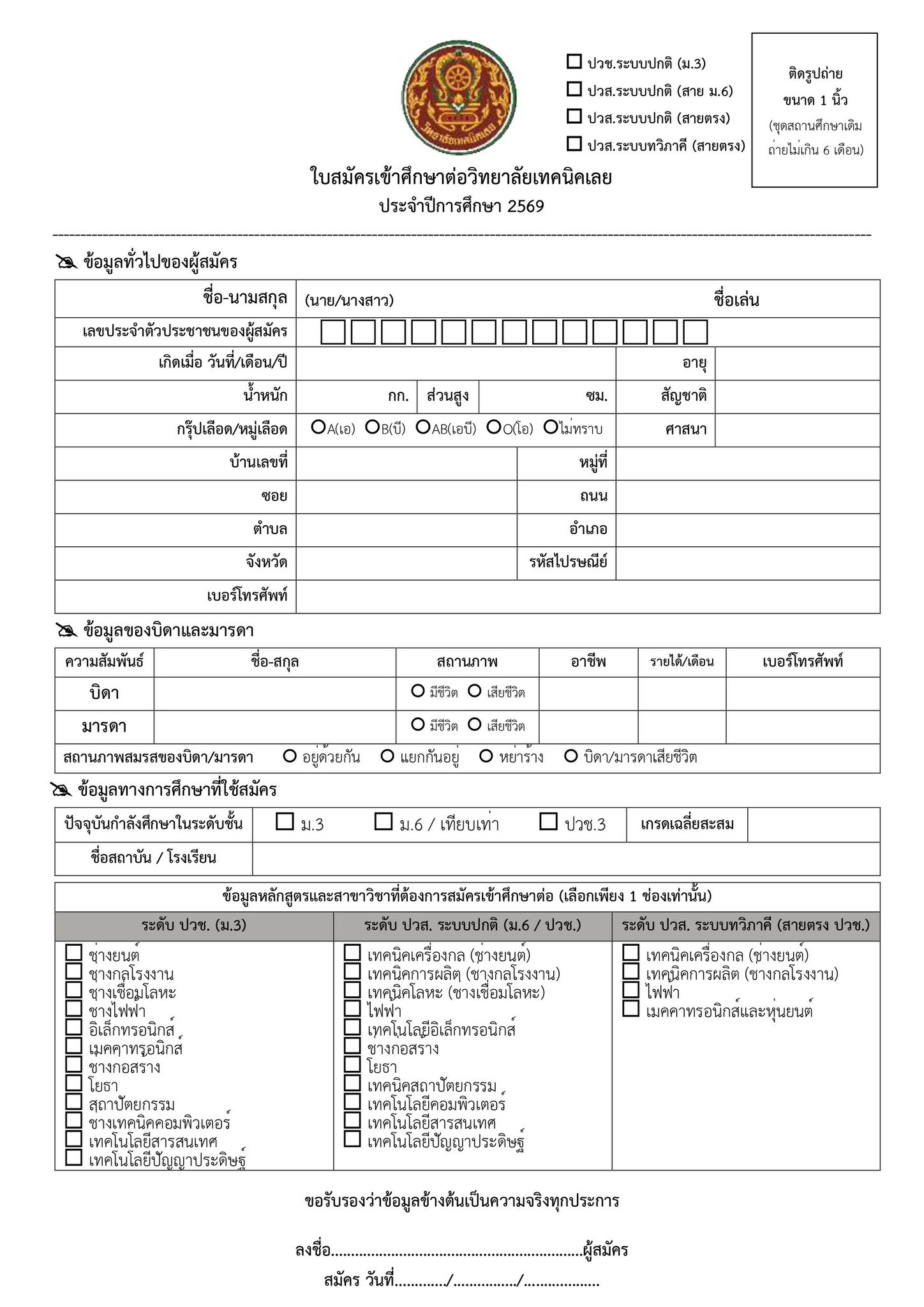 รับสมัคร นักเรียน นักศึกษา ประจำปีการศึกษา 2569